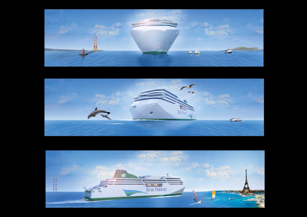 Irish Ferries liked the dramatised poster I designed for their big new ship so much it was turned into a TV ad. I did a three frame storyboard and the guys in Piranha Bar did their magic. Simple. Made even sweeter by a great track suggested by Adrian Cosgrove.